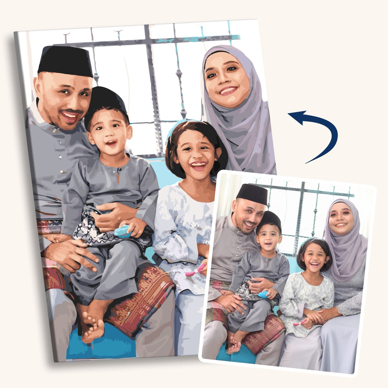 • Encadrée : la toile est pré-tendue sur un cadre en bois, prête à être accrochée une fois terminée.